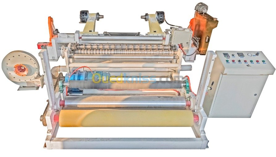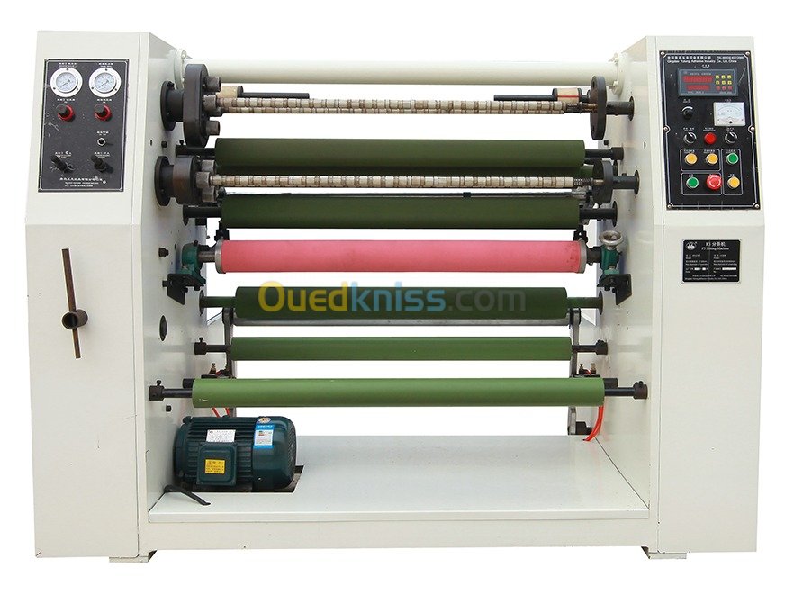 1. LARGE DIMENSION SCOTCH ROLL MANUFACTURING MACHINE. 2. SMALL-DIMENSIONAL SCOTCH ROLL MANUFACTURING MACHINE FOR STATIONERY This machine is panel-controlled for each of its parts, and easy to operate, three sections of electronic counter to control the length of the material accurately; The position of the label is not affected by the positioning of the tape stopper and its length can be counted in a circular fashion; High efficiency fixed point automatic switching shaft. Frequency controls speed; The blade is a round blade with air pressure drive, specializing in the production of stationery tape.